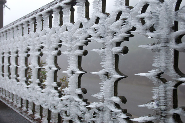 Pagar dari besi pun diselimuti dengan es