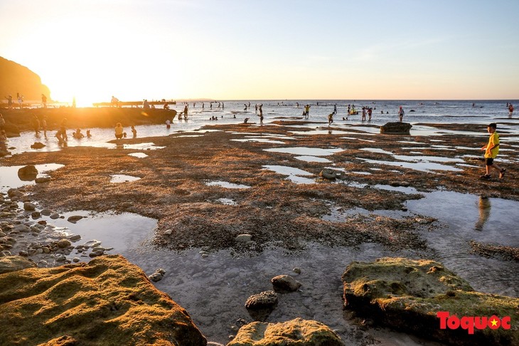 Pada pukul 16-17 sore, ketika air laut surut, jalan sepatak muncul di tengah-tengah lapisan batu yang kasar (Foto: toquoc.vn)