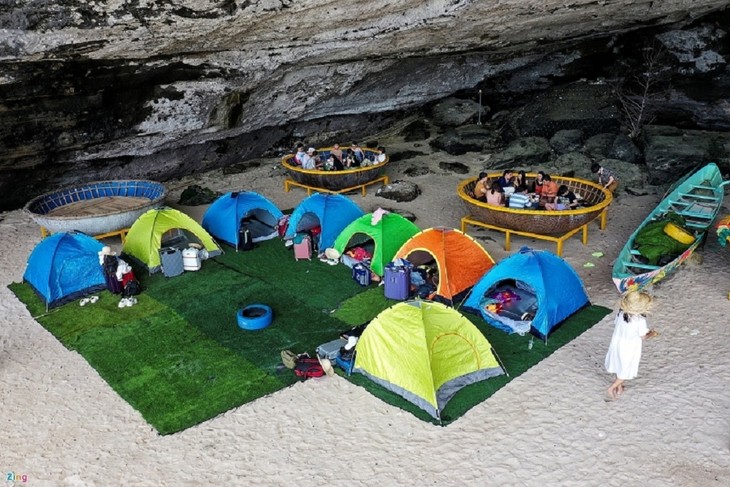 Berkemahan di Hang Cau juga menjadi pengalaman aneh dan khas (Foto: laodong.vn)