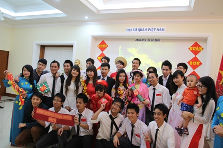 Para mahasiswa Vietnam yang kuliah di berbagai Universitas telah berlatih secara antusias untuk program kesenian dan musik pada Hari Raya Tet komunitas di Indonesia. Dalam irama ringan, satu ruang yang seratus persen Vietnam dibuka, sehingga menciptakan suasana musim semi yang bercorak nasional dari kampung halaman Vietnam di sebuah negeri yang cuacanya panas dan penuh angin seperti Indonesia . Saudara Nguyen Anh Minh, seorang personel IT yang sedang bekerja di Indonesia mengatakan:“Ini adalah tahun kedua, saya menghadiri Hari Raya Tet komunitas di Kedutaan Besar Vietnam di Indonesia. Tetapi, pada tahun ini, saya melihat situasi persiapan dan program merayakan Hari Raya Tet sangat gembira dan hangat. Semua acara kesenian menarik dan khas, sehingga membuat saya laksana sedang merayakan Hari Raya Tet di kampung halamanku sendiri”