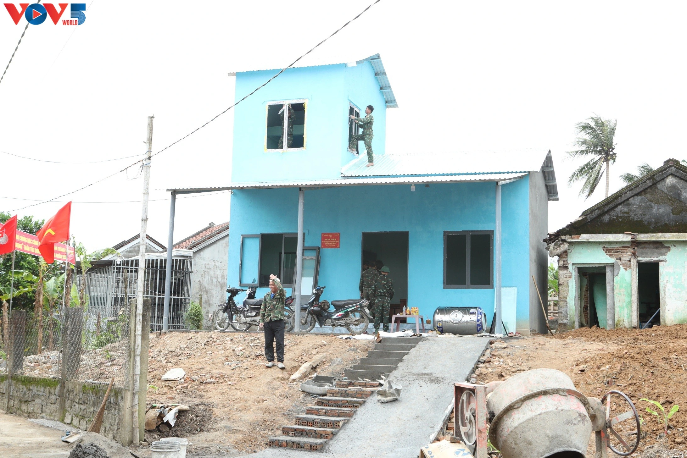 Para prajurit bekerja lembur siang malam untuk membangun rumah baru kepada masyarakat daerah banjir (Foto: Van Phu) |