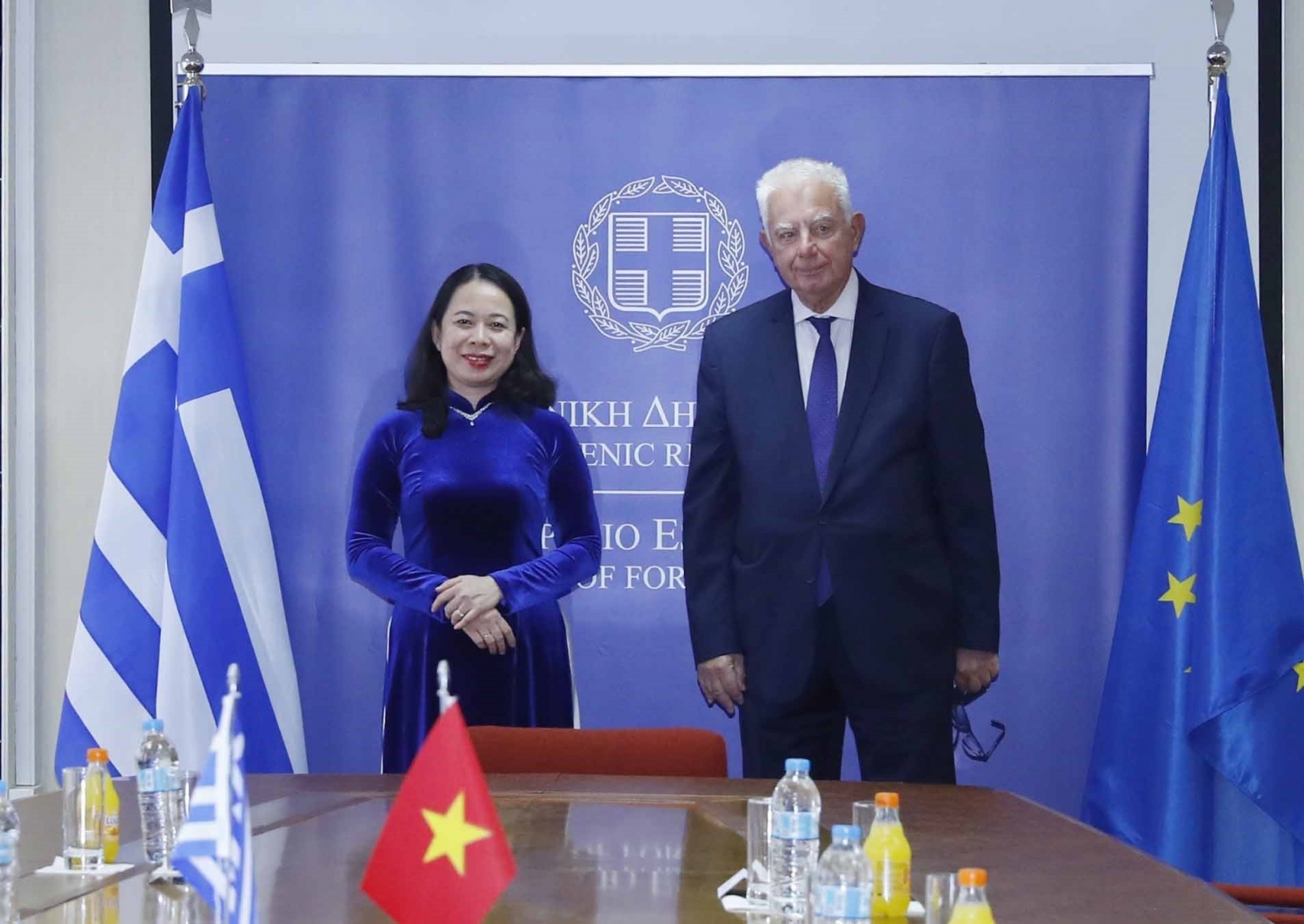 Wapres Vietnam, Vo Thi Anh Xuan dan PM Yunani, Panagiotis Pikkrammenos (Foto: VNA) |