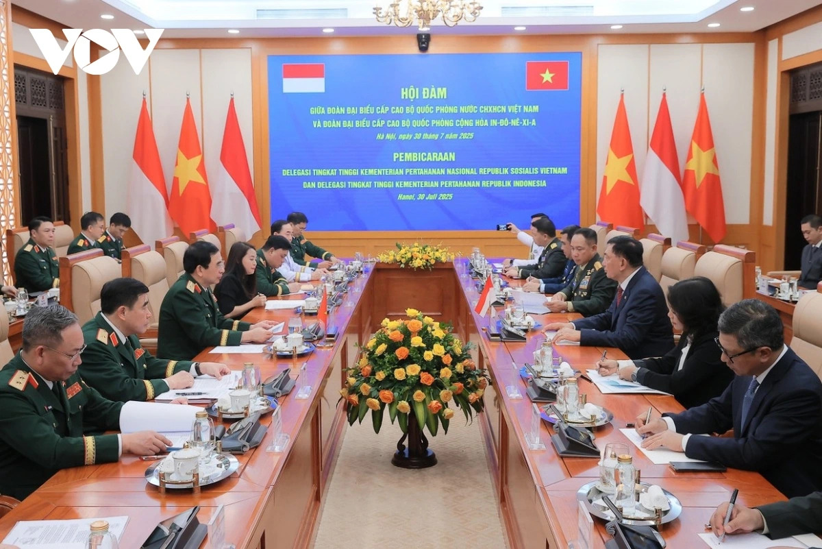 Panorama pembicaraan pertahanan Vietnam-Indonesia pada tgl 30 Juli tahun 2025 (Foto: VOV) |