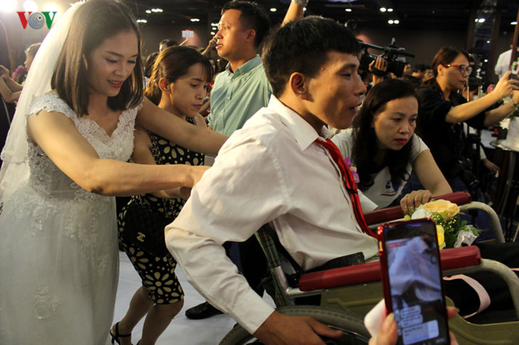 Pernikahan masal dengan tema: “Impian yang menjadi kenyataan”, telah diadakan pada Minggu sore (23 Juni), di Kota Ha Noi untuk para pasustri difabel dan orang miskin. Yang hadir pada program tersebut, ada 59 pasustri difabel dan 6 pasustri yang adalah keluarga miskin, berpenyakitan dan sedang menjalani terapi cuci darah ginjal