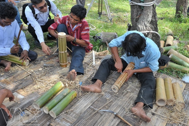 Walaupun instrumen musik Chapi ini dibuat secara manual, tapi gerakan bapak Pi Nang Thuan sangat akurat, khususnya ialah cara dia membelah kulit bambu untuk membuat senar Chapi. Dia menggunakan mata pisau untuk membelai kulit bambu dan membuat 6 pasangan senar dengan nada yang berbeda-beda. Lalu menyelipkan batang bambu kecil untuk menciptakan nada yang variatif. Setelah proses menghiasi Chapi, bapak Pi Nang Thuan segera memetik instrumen musik ini untuk pertama kali.