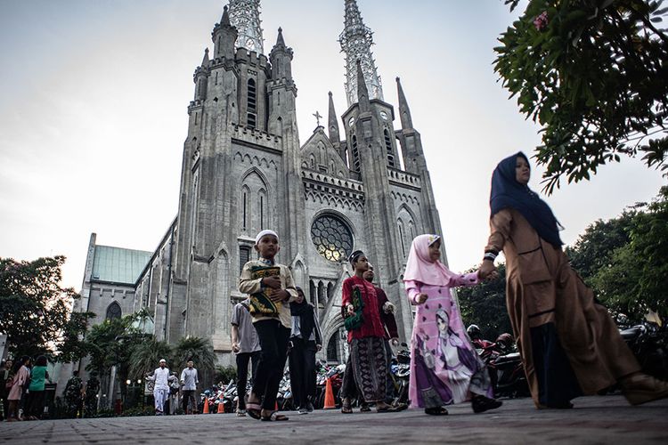 Masjid Istiqlal yang berhadapan Gereja Katedral, geraja Katolik pertama di Jakarta, membuktikkan toleransi dan kerukunan agama bangsa dari Indonesia. |