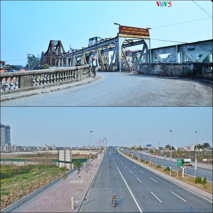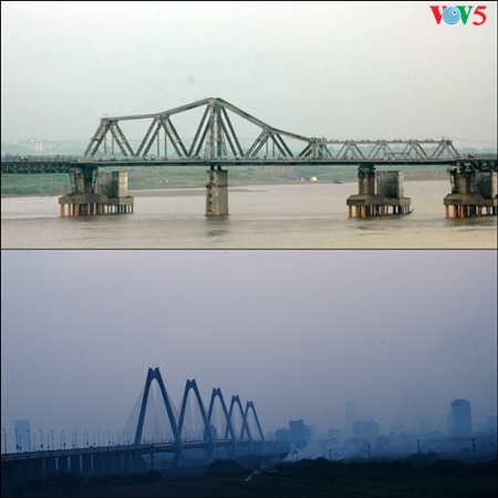 | Jembatan Long bien dibangun pada masa perang dan jembatan Nhat Tan dibangun pada masa damai. |