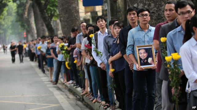 (VOVworld) – Ketika matahari belum terbit, ruas jalan yang panjangnya kira-kira 1 Km dari daerah depan Musolium Presiden Ho Chi Minh sampai rumah di jalan Hoang Dieu, No.30 sudah ada puluhan ribu penduduk yang antri untuk menunggu giliran berziarah kepada Almarhum Jenderal Vo Nguyen Giap. Antrian itu semakin hari semakin bertambah, bergerak secara pelan-pelan, membawa kesedihan terhadap kepergian Almarhum.