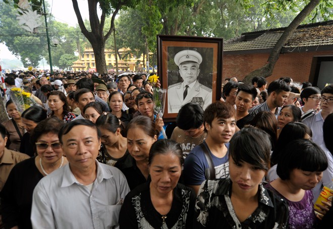 Memberikan penghormatan terakhir kepada Almarhum Jenderal bangsa ini membangkitkan satu perasaan yang sulit diungkapkan dalam hati setiap penduduk. Setiap orang memilih cara sendiri-sendiri untuk memanifestasikan penghormatan kepada Almarhum Jenderal Vo Nguyen Giap. Di sana sini di tengah-tengah antrian ada senyuman dari Jenderal, jabatan-jabatan tangan yang akrab antara Jenderal Vo Nguyen Giap dengan para prajurit dan rakyat, dll, dalam foto-foto yang dibawa penduduk bagaikan satu cara untuk mengenangkan Almarhum.