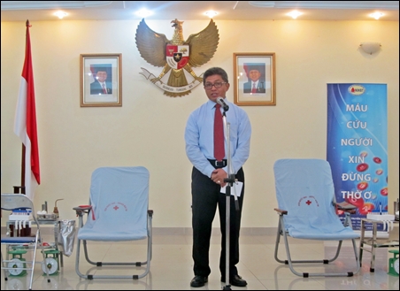 | Para Staff KBRI berturut-turut memberikan donor darah kemanusiaan sukarela. |
