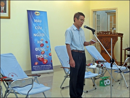 | Pham Tan Duong, Wakil Kepala Institut Hematologi dan Tranfusi Darah Pusat membacakan sambutan |