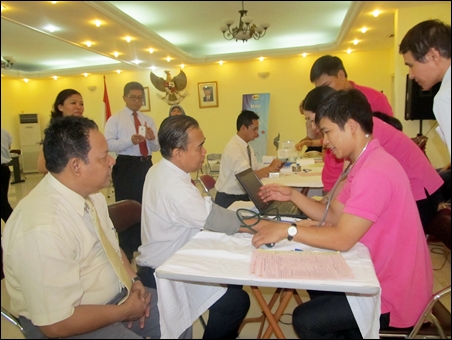 | Duta Besar Mayerfas juga ikut serta pada pemeriksaan kesehatan untuk memberikan donor darah |