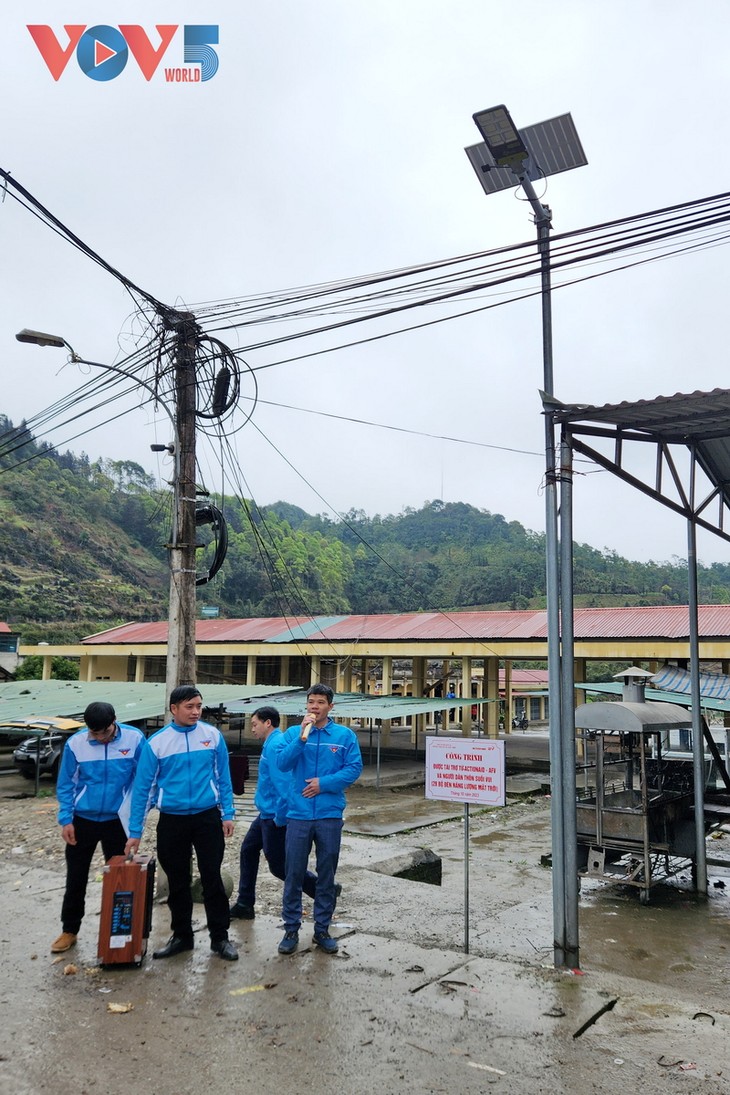 Proyek sistem penerangan tenaga surya berkontribusi untuk meningkatkan tanggung jawab masyarakat dan pemerintahan lokal dalam mengambil tindakan untuk melindungi lingkungan dan meminimalkan penyebab perubahan iklim. (Foto: Duc Anh/VOV5) |