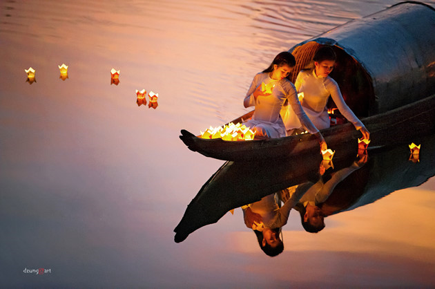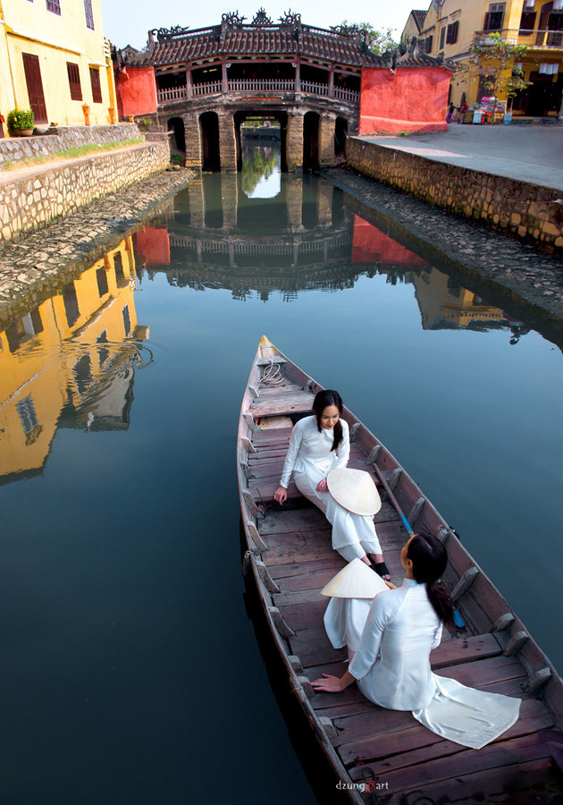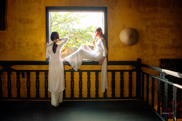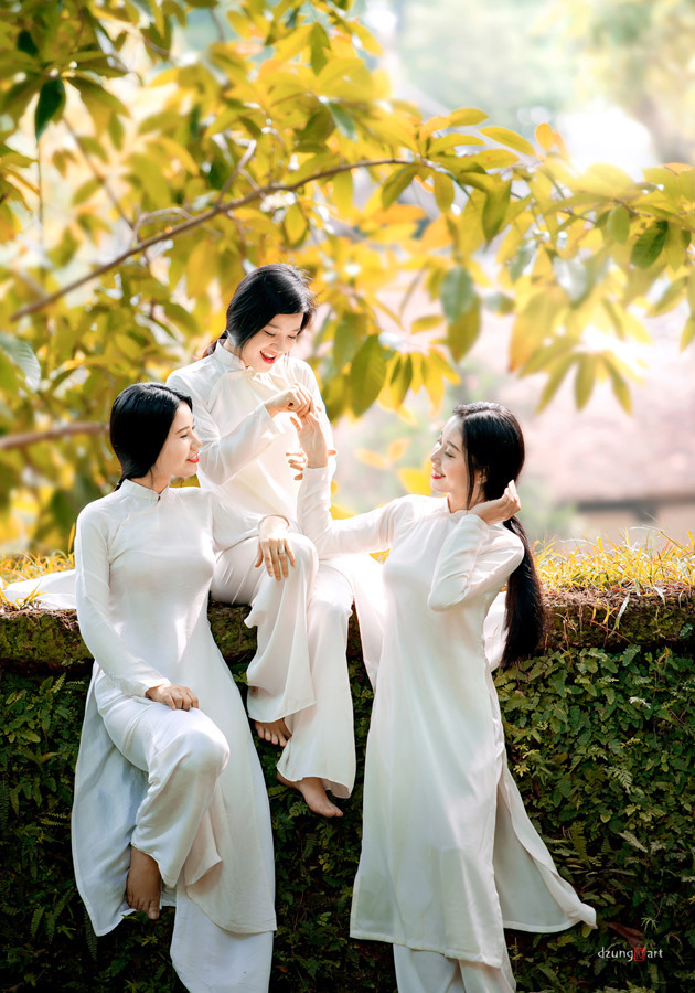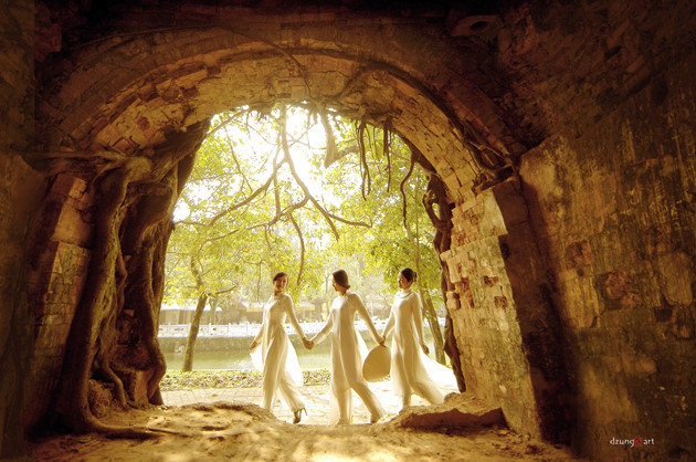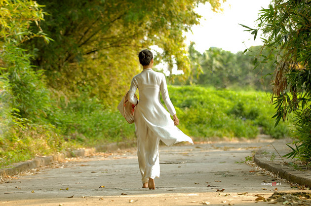 Nguyen Quoc Dung telah menciptakan kesan tersendiri dengan gaya foto Ao Dai tapi kental dengan sifat seni lukis dalam setiap fotonya. |