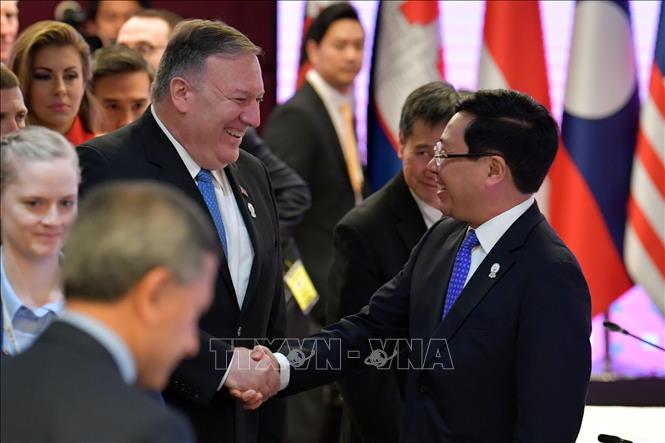 Deputi PM, Menlu Vietnam, Pham Binh Minh dan Menlu AS, Mike Pompeo dalam konferensi tersebut (Foto: VNA) |
