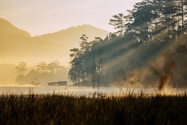 Selain keindahan yang masih alami seperti danau mutiara di tengah hutan pinus di awal-awal, Tuyen Lam semakin menarik dengan hutan kegenangan air dalam kabut pagi. Foto: petrotimes.vn