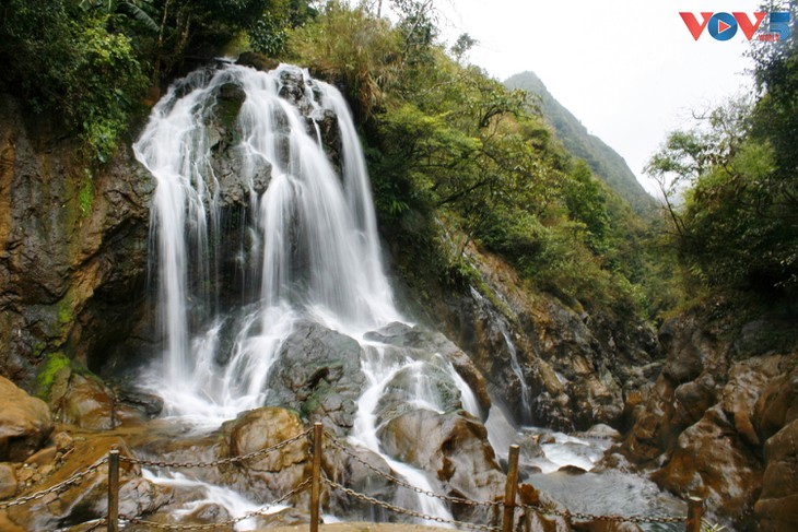 Memandangni keindahan air terjun Bac, jembatan May...