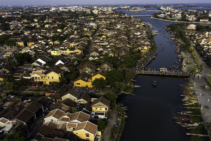 Dilihat dari atas, Hoi An muncul dengan dinding-dinding kuning, atap-atap genteng coklat tua yang diwarnai waktu di tepi sungai Hoai yang puitis. (Foto: Hai Son/VOV)