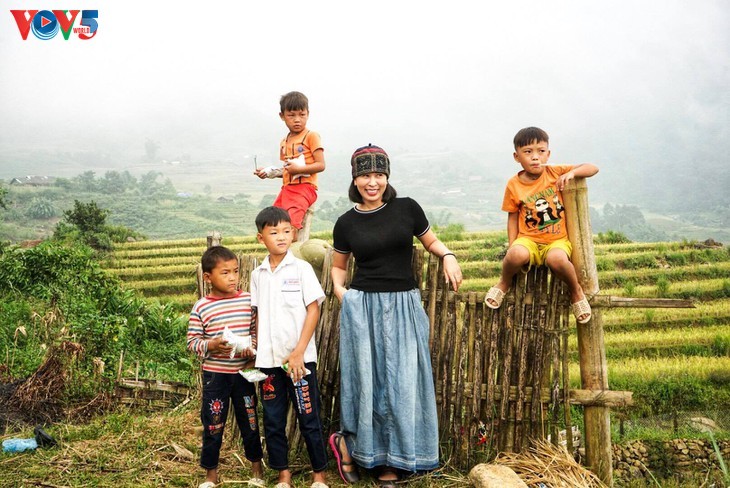 Wisatawan dan anak-anak Mu Cang Chai (Foto: Doan Nguyen) |