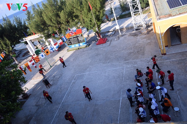 Pokja melakukan temu pergaulan dengan para prajurit di pulau Sinh Ton Dong |