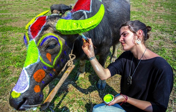 Kelompok 5 karya foto yang meraih hadiah hiburan: “Festival melukis di badan kerbau di provinsi Ha Nam”