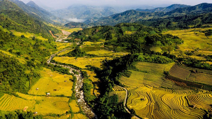 Berjalan-jalan di jalan tikus di sebelah sawah terasering yang harum dan matang, Anda akan melihat rumah-rumah warga etnis minoritas Dao dan warga etnis minoritas Mong yang terletak di lereng bukit, sangat sederhana, sudah ada hampir seratus tahun yang lalu.