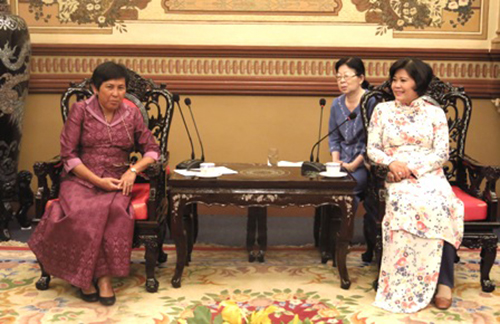 2. Wakil Ketua Komite Rakyat kota Ho Chi Minh, Nguyen Thi Hong menerima Menteri Kebudayaan dan Kesenian Kamboja, Phoeurng Sackona.