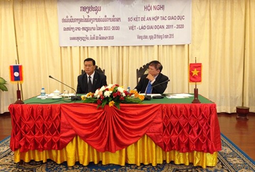 3. Profesor Muda, Doktor, Kongsy Sengmany – Deputi Menteri Pendidikan dan Olahraga Laos bersama dengan Profesor, Doktor Ilmiah, Bui Khanh Ga – Deputi Menteri Pendidikan dan Pelatihan Vietnam memimpin Konferensi evaluasi sementara terhadap proyek kerjasama pendidikan Vietnam – Laos tahap 2011-2015 yang diadakan di Vientiena pada 20 Mei 2015.