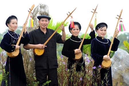 Para artisan memainkan siter Tinh. (Foto: internet) |