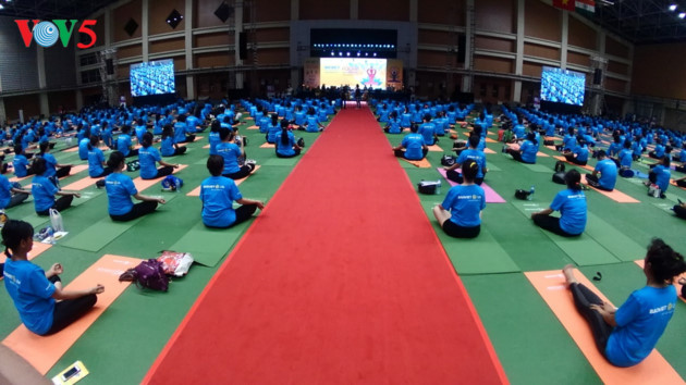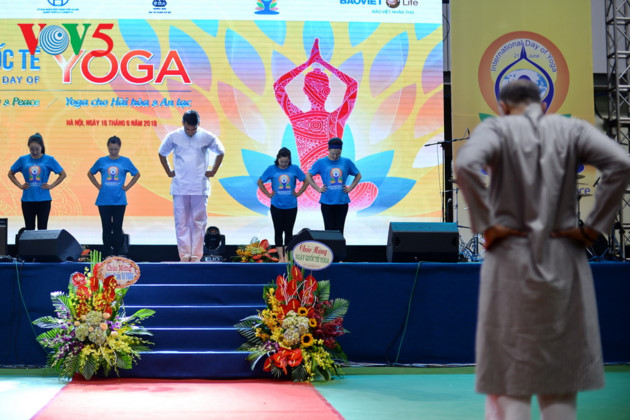 Duta Besar India di Vietnam, Parvathaneni Harish membacakan pidato di peristiwa “Yoga bisa memberikan pengubahan yang positif kepada keharmonisan, ketenteraman dan perdamaian di dunia. Dewasa ini, Yoga membantu mengaitkan manusia, membuat kita saling mendekati.”