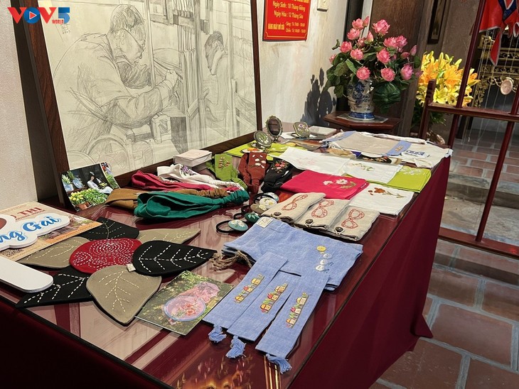 Di Balai desa Tu Thi juga dipamerkan sejumlah produk kerajinan tangan dari brand-brand terkenal di jalan Hang Gai.