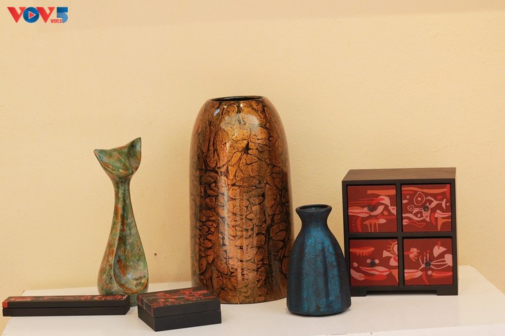 Seniman muda telah menciptakan ruang instalasi dengan karya-karya yang menggunakan bahan pernis khas Vietnam.