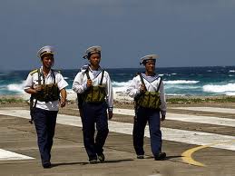 Para prajurit melakukan patroli di pulau Sinh Ton