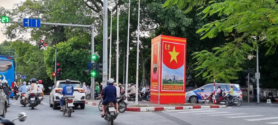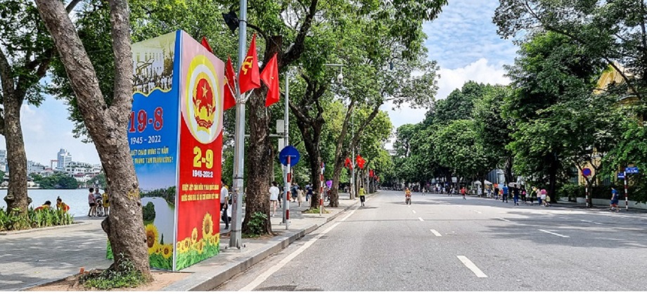 Sejak awal Agustus, kegiatan dekorasi, propaganda, dan dorongan visual telah dilakukan di banyak jalan utama Kota Hanoi.