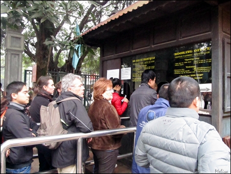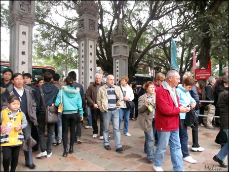 | Wisatawan antri untuk membeli tiket masuk Kuil Sastra Van Mieu -Quoc Tu Giam |
