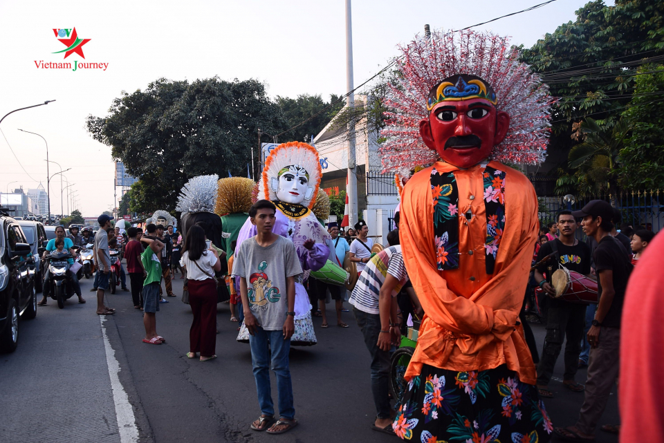 Dengan tangan dari para tukang kerajinan yang berketrampilan, puluhan pasangan Ondel-ondel dari desa kerajinan tradisional Keramat bergerak melewati jalan-jalan di jantungnya Ibukota Jakarta. |