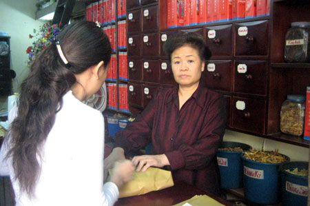 Keluarga saya menjalankan usaha ini sudah 30 tahun. Ini merupakan kejuruan yang diwariskan oleh nenek dan kakek saya. Barang-barang jualan di sini terutama obat-obat timur tradisional. Ini adalah jalan utama bidang kesehatan maka ada cukup lengkap semua jenis obat yang bernilai… Yang paling disukai oleh pelanggan sekarang ini adalah “tam that”, sejenis obat tradisional yang bermanfaat bagi darah dan membunuh tumor…” Tidak hanya menjual obat-obat timur tradisional, di jalan terkenal ini juga ada tabib-tabib yang khusus meramu resep obat-obat timur tradisional dan mengobati pasien.