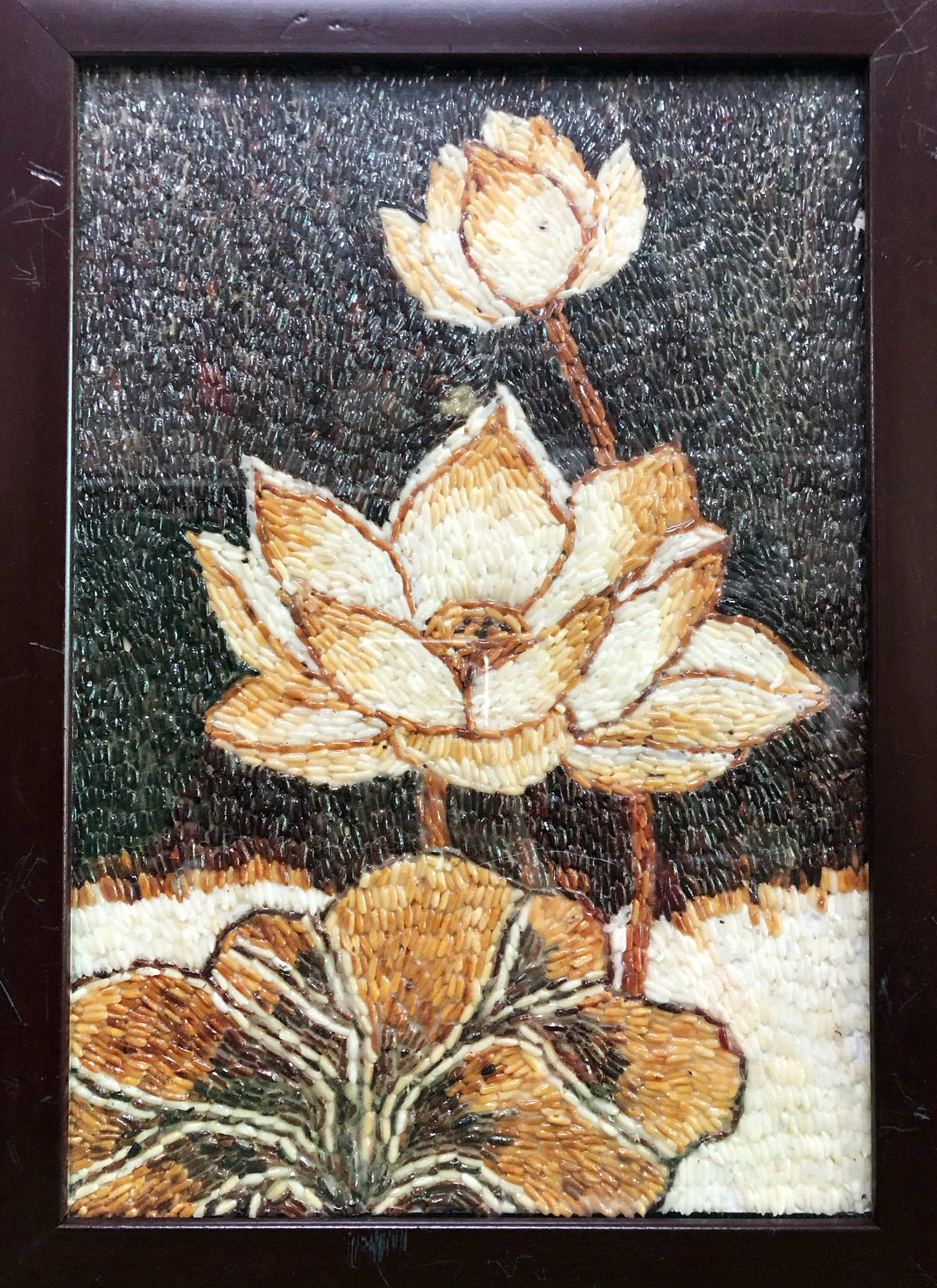 Lukisan beras yang menggambarkan bunga teratai. Foto: VOV |