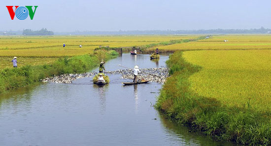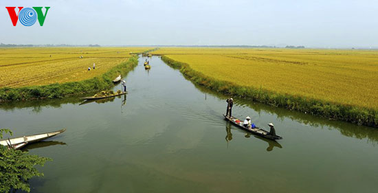 (VOVworld)- Saban tahun, saat-saat seperti ini, seluruh negeri Vietnam memasuki masa menuai padi. Di sawah-sawah dari semua daerah pedesaan di Vietnam, padi masak menguning. Marilah saudara-saudara memandangi sawah-sawah padi yang menguning di Thanh Thuy - propinsi Thua Thien Hue ( Vietnam tengah).