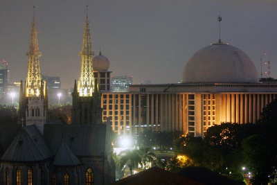 | Masjid ini berhadapan Gereja Katolik |