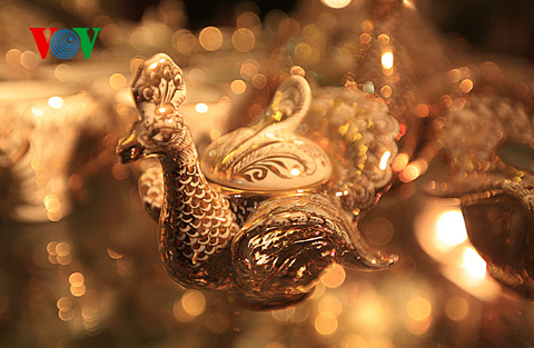 (VOVworld) - Sudah 30 tahun bekerja di bidang keramik dan porselan, bapak Bui Xuan Hai selalu berusaha mencari teknik baru untuk mencat barang keramik dan porselannya. Kini produknya sudah menjadi unik dan terkenal karena semuanya dilapisi dengan emas asli.