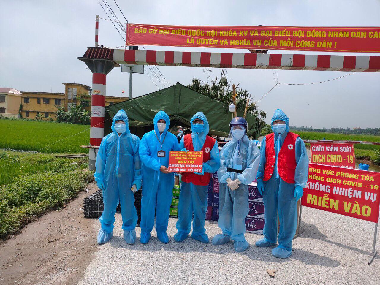 Tim relawan menyampaikan alat pelindung diri kepada pasukan garis depan melawan pandemi Covid 19. Foto: VOV |