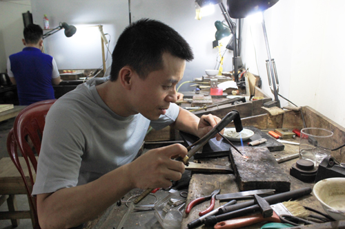 Seorang pengrajin perak Dinh Cong (Foto: hanoimoi.com.vn) |