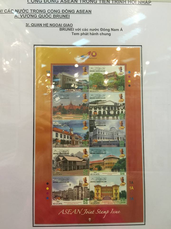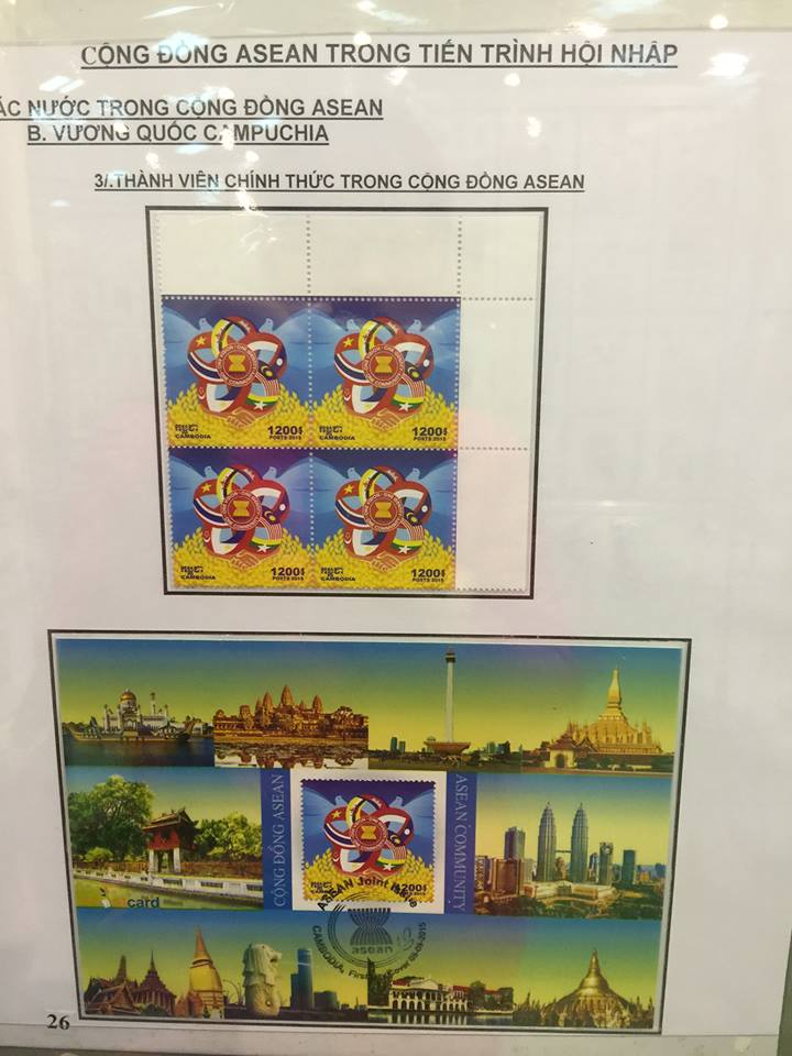 Dalam koleksi prangko-nya, juga ada satu perangkat prangko yang cukup istimewa. Yaitu perangkat prangko: “Menyambut Komunitas ASEAN” yang diedarkan pada 8/8/2015. Ini merupakan perangkat prangko yang diluncurkan di 10 negara ASEAN. Mereka sepenuhnya sama baik di simbol maupun di cap pos yang dirancangkan oleh Vietnam. Ada perbedaan yang satu-satunya ialah nama negara dan harganya.