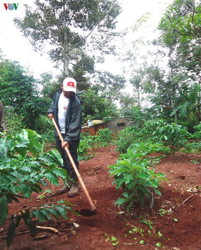 Pak Mai Dinh Phuong memperbaiki pendapatannya karena pertananam campuran dengan berbagai pohon buah-buahan di kebun kopi (Foto: VOV) |