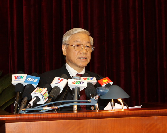 Tentang pekerjaan melakukan pembaruan dan penyempurnaan terhadap sistim politik dari Pusat sampai basis, Sekjen Nguyen Phu Trong memberitahukan: Selama lebih dari setahun ini, Polit Biro KS PKV telah memberikan pengarahan dan mengevaluasikan pelaksanaan Resolusi Sidang Pleno ke-5 KS PKV angkatan ke-9 mengenai “Memperbarui dan meningkatkan kualitas sistim politik di kecamatan dan kecamatan kota”, melakukan evaluasi sementara tentang pelaksanaan Resolusi Sidang Pleno ke-4 KS PKV angkatan ke-10 mengenai “Memperbarui dan menyempurnakan mesin badan Partai, memberikan pengarahan tentang pembaruan mesin Negara, Front Tanah Air dan semua organisasi politik-sosial”; bersamaan itu juga mendengarkan laporan mengenai beberapa isi spesialis seperti “Hasil eksperimen tentang tidak mempunyai Dewan Rakayat di beberapa kabupaten, kabupaten kota dan kecamatan kota”, melakukan eksperimen tentang opsi sekretaris yang merangkap ketua komite rakyat kecamatan dll...untuk menyusun proyek: “Terus melakukan pembaruan dan penyempurnaan terhadap sistim politik dari pusat sampai basis” supaya KS mempelajari dan memberlakukan Resolusi tentang masalah ini. Oleh karena itu Sidang Pleno kali ini berfokus membahas dan menilai secara menyeluruh masalah-masalah yang bersangkutan dengan pekerjaan mencengkam dan melaksanakan semua Resolusi dan Kesimpulan Komite Sentral, menunjukkan segi-segi yang berhasil dan belum berhasil, menganalisis sebab-musabab, merekomendasikan pandangan, haluan dan langkah mengatasi keterbatasan dan kelemahan.
