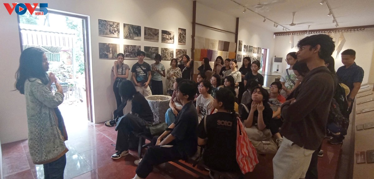 Perkenalkan kerajinan membuat kertas Do kepada wisatawan mancanegara (Foto: Kim Lieu/VOV5) |