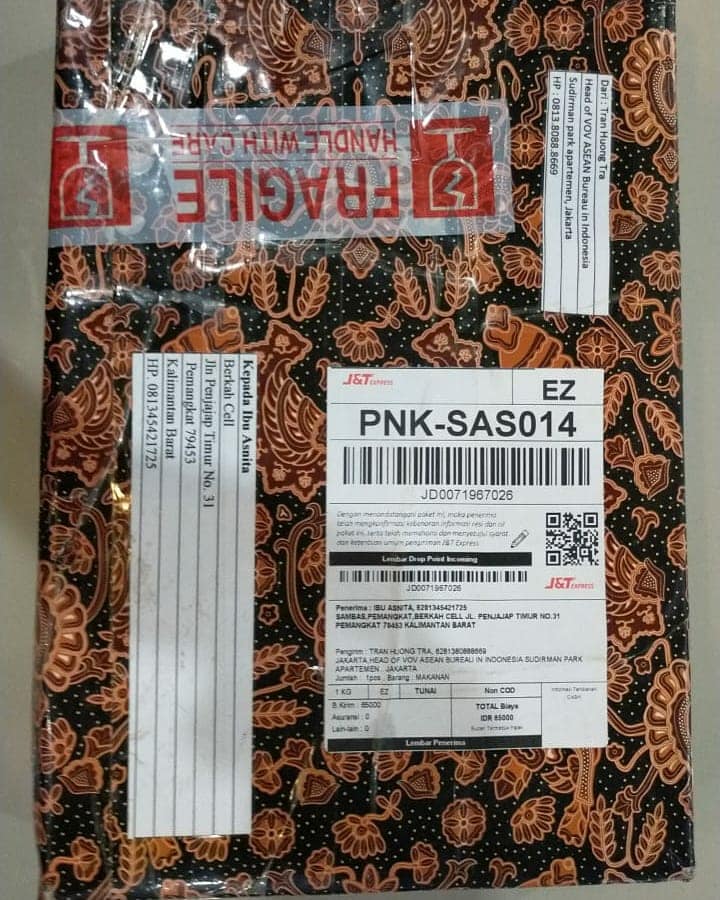 Kantor Perwakilan VOV di Indonesia mengirim bingkisan kepada para pendengar sehubungan dengan Hari Raya Lebaran (Foto: Pendengar Rudy Hartono) |