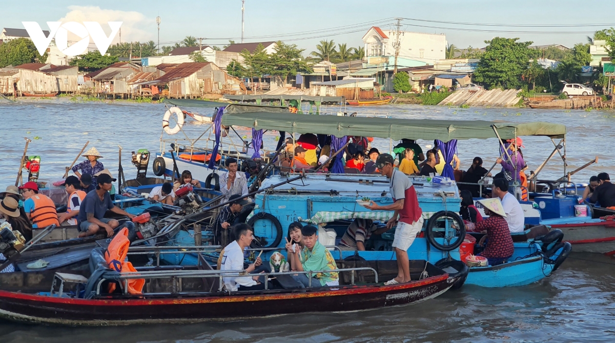 Para wisatawan berkunjung pasar terapung Cai Rang (Foto: VOV) |