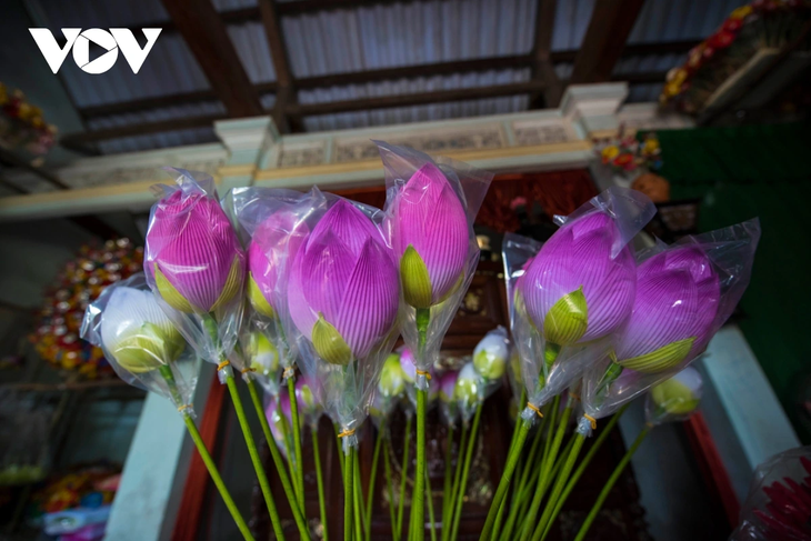 Bunga kertas Thanh Tien sering dijual bersama patung Dewa Zao Jun di pasar-pasar di desa.
